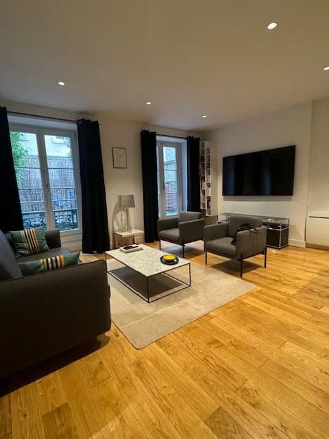 Cet appartement de standing se compose d’une grande pièce de vie lumineuse, avec parquet, d’une cuisine ouverte entièrement meublée et équipée avec soin (four, plaques de cuisson, frigo américain, lave vaisselle), d’une chambre de 12,70 m2 ainsi que d’une salle d’eau avec lave linge et toilettes.